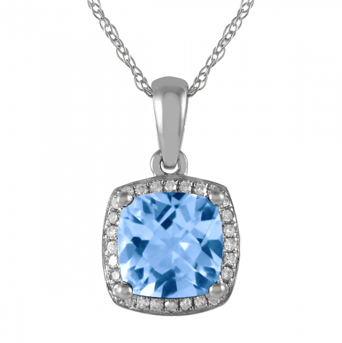 Our birthstone collection necklaces features stunning checkered center stones surround by beautiful round brilliant diamonds. Made out of luxurious white gold to accent the stones this is the perfect necklace for any december baby.