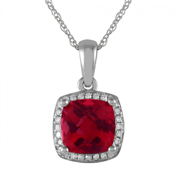- Gemstone: Cushion-cut Lab Ruby (July birthstone)