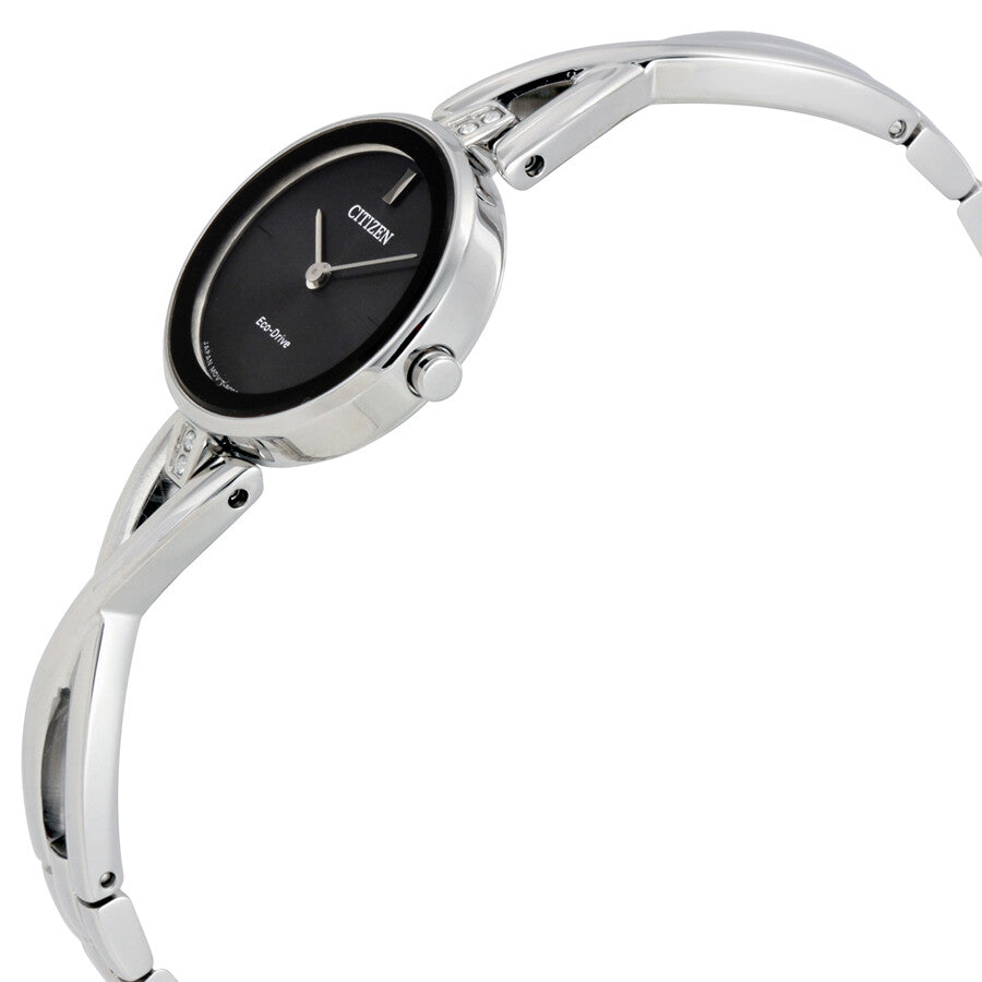 Citizen Eco-Drive Silhouette EX1420-50E – Stainless Steel Bangle Bracelet, Black Dial Ladies’ Watch