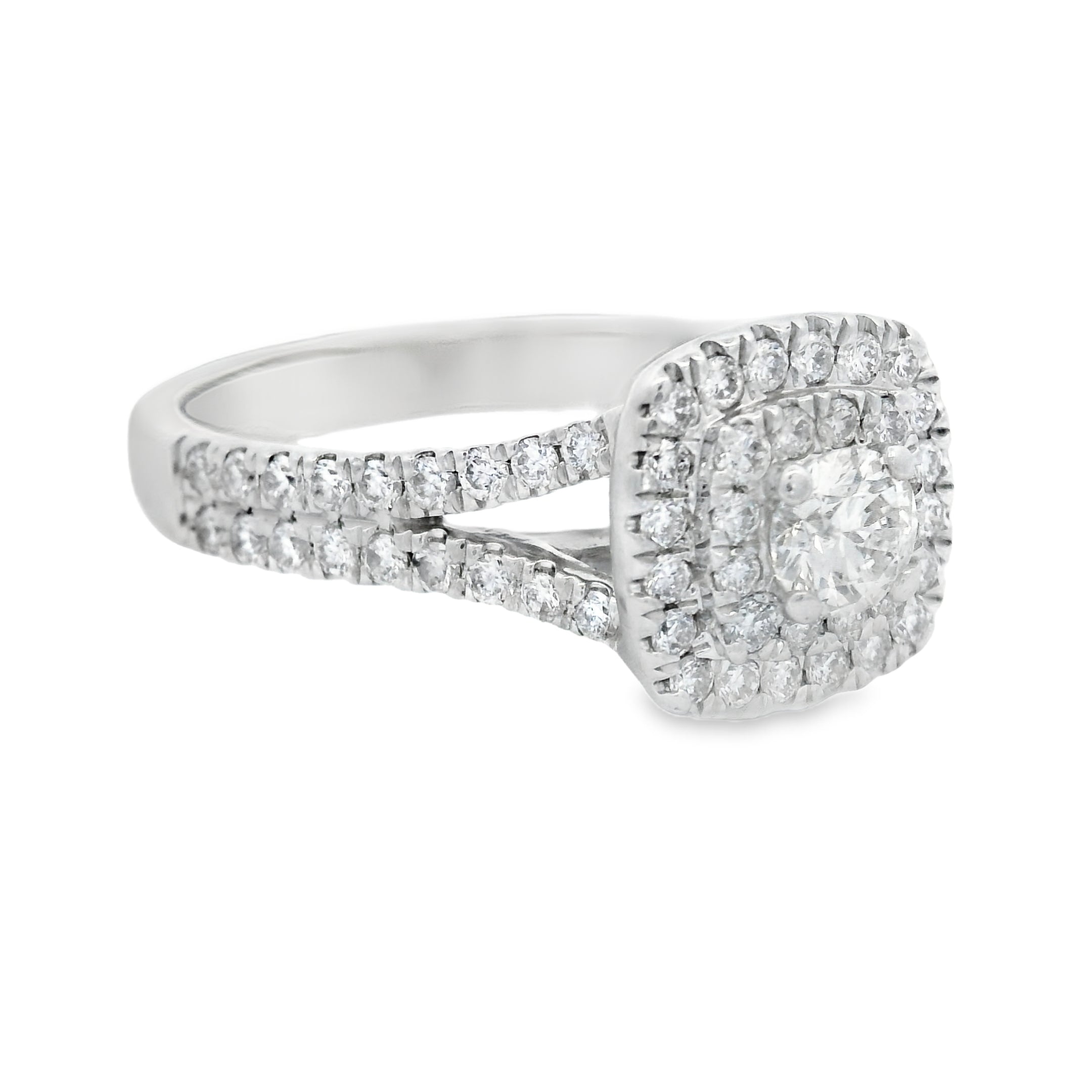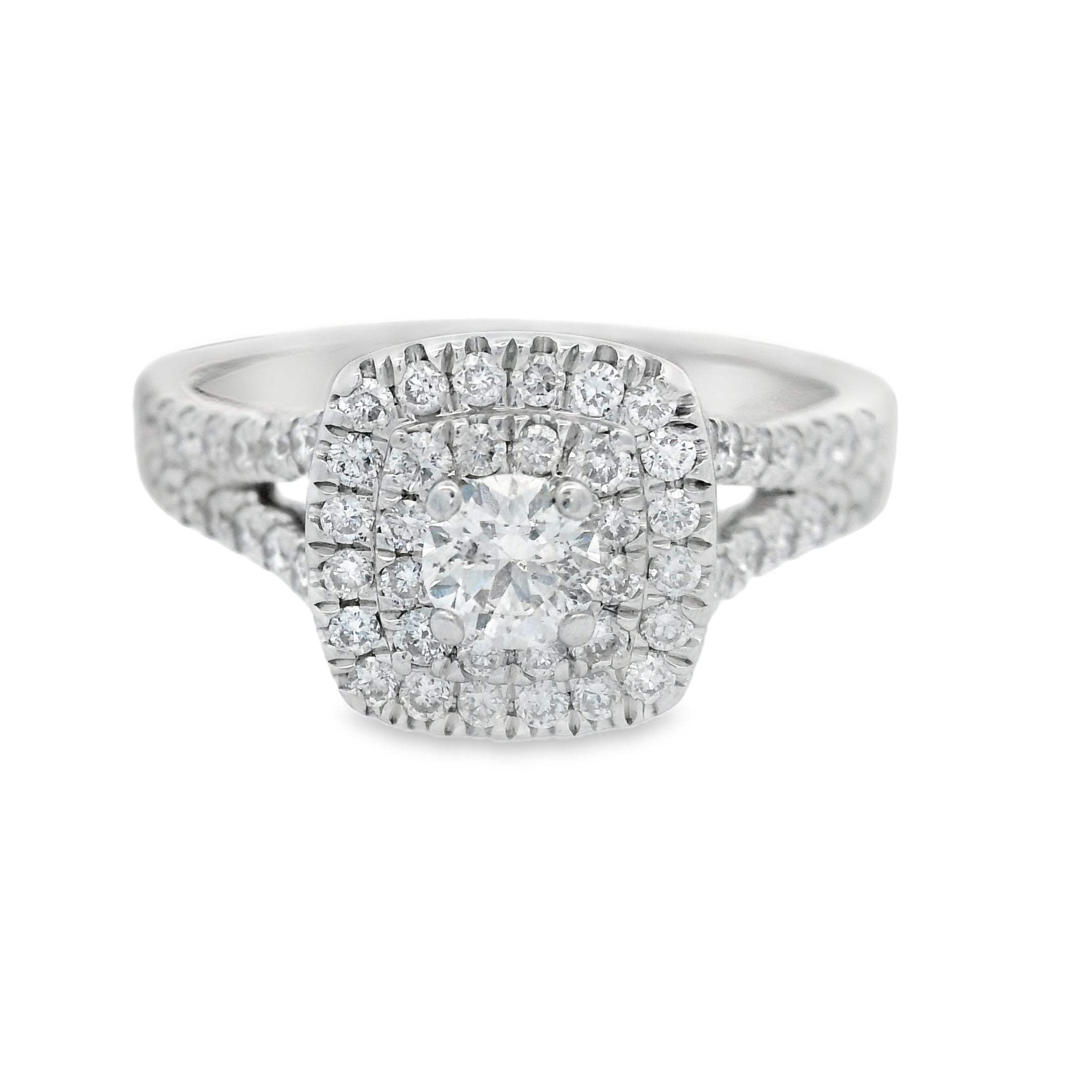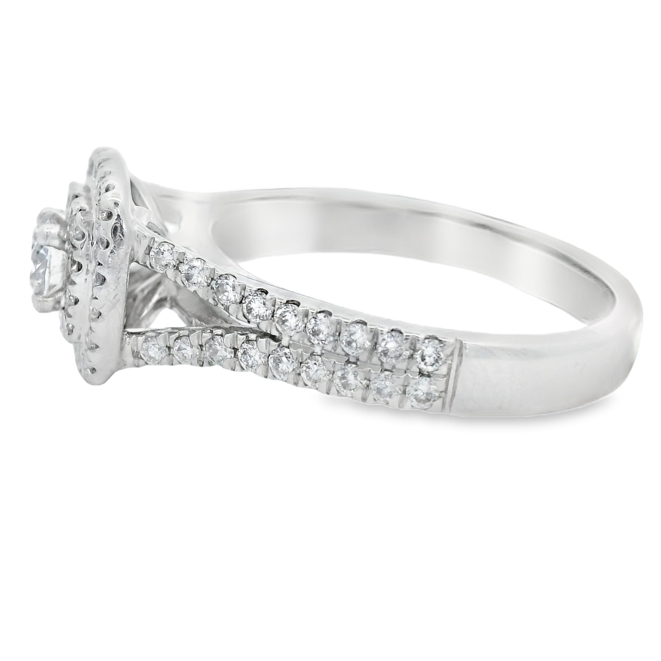 Double Halo Round Brilliant Split Shank Diamond Engagement Ring