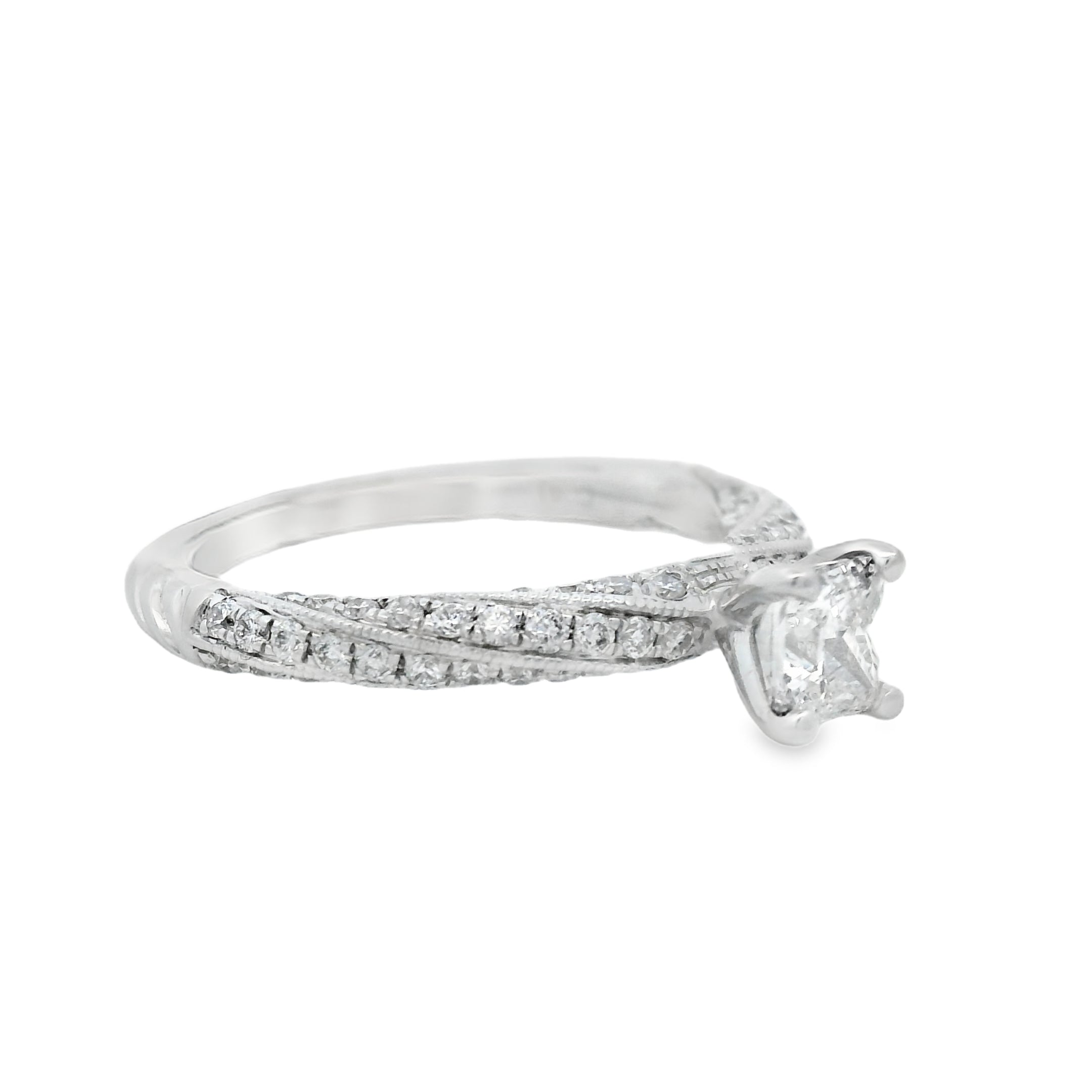 Princess Cut Accented Twist Diamond Engagement Ring