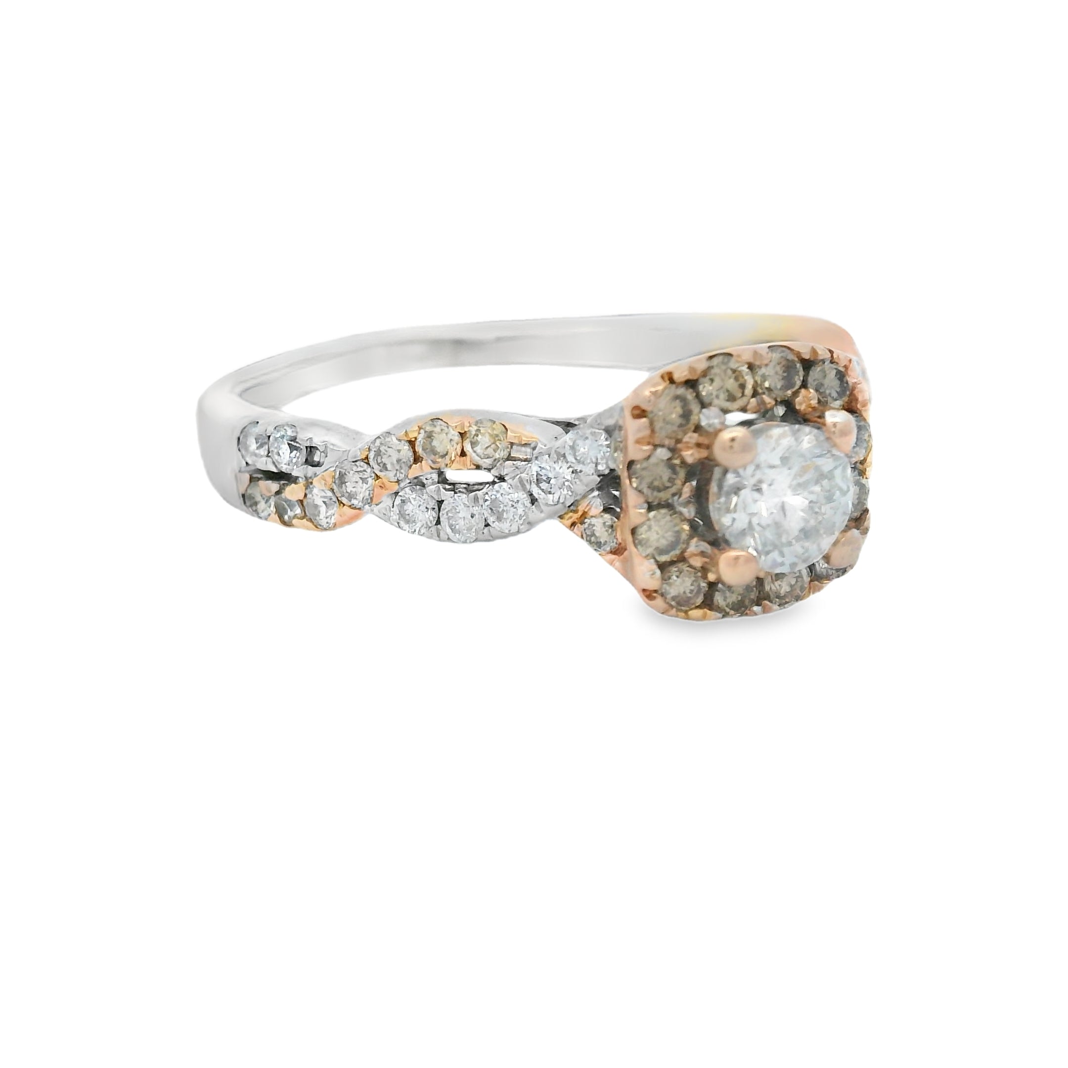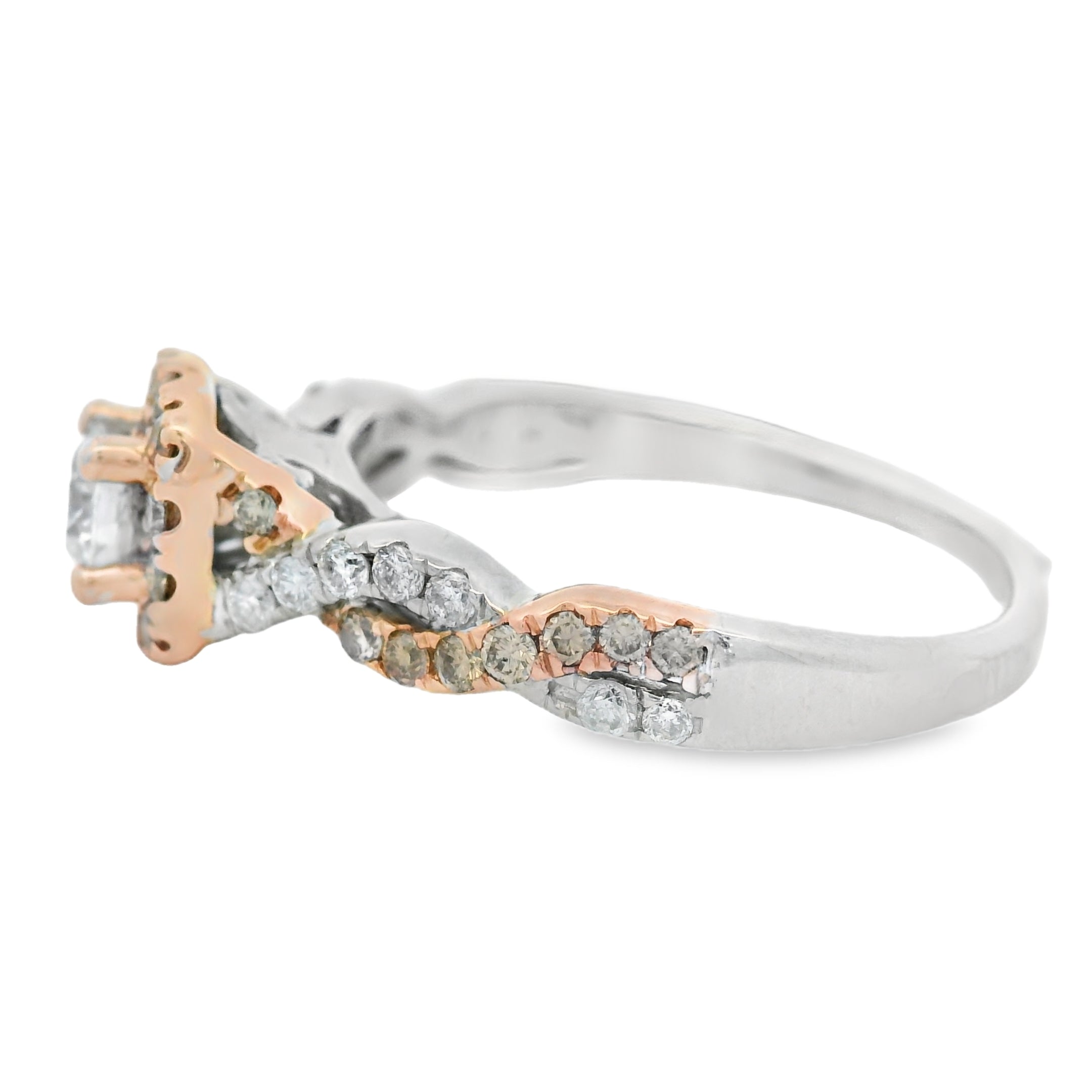 Rose And White Gold Twist Halo Diamond Engagement Ring