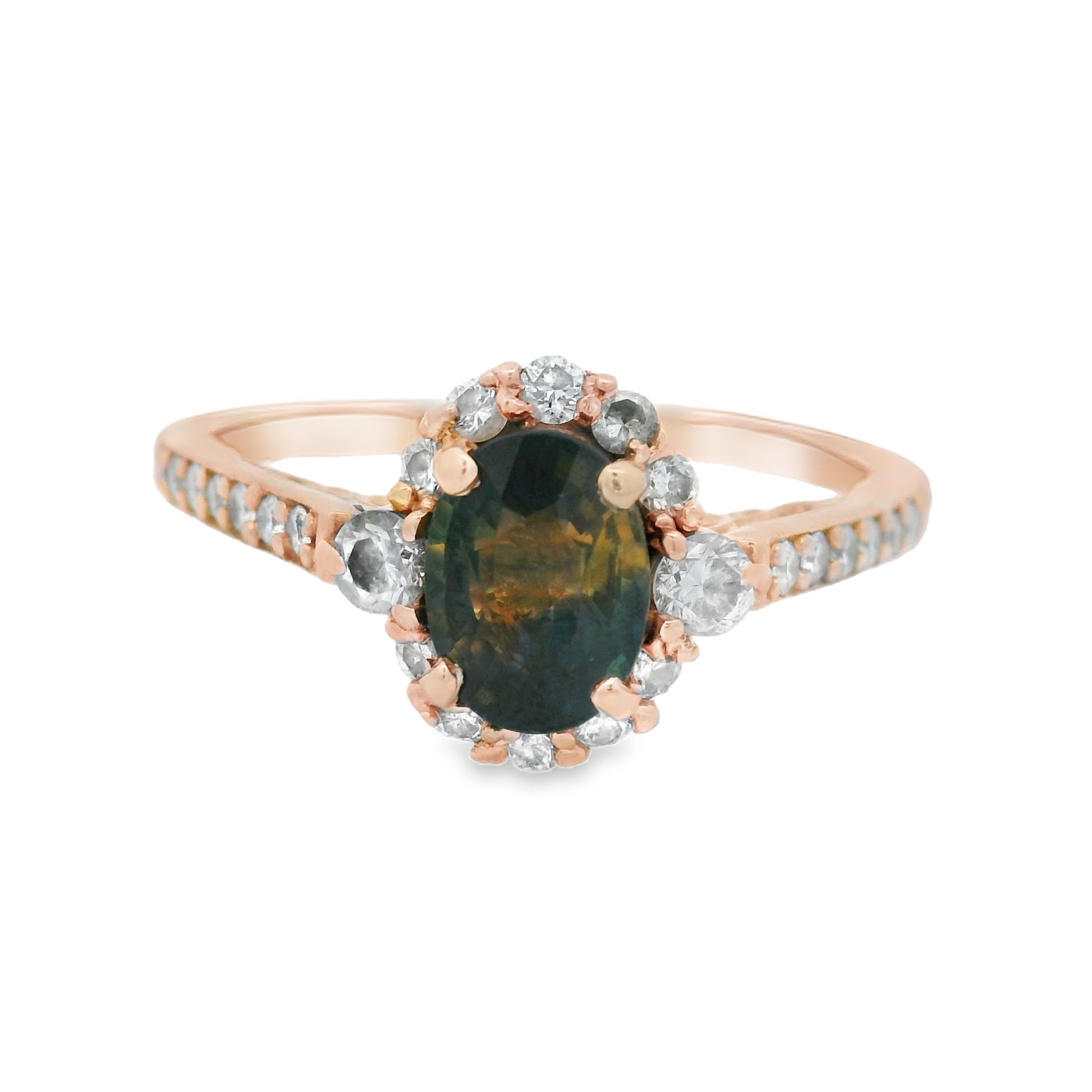 Rose Gold Oval Sapphire Halo Diamond Engagement Ring