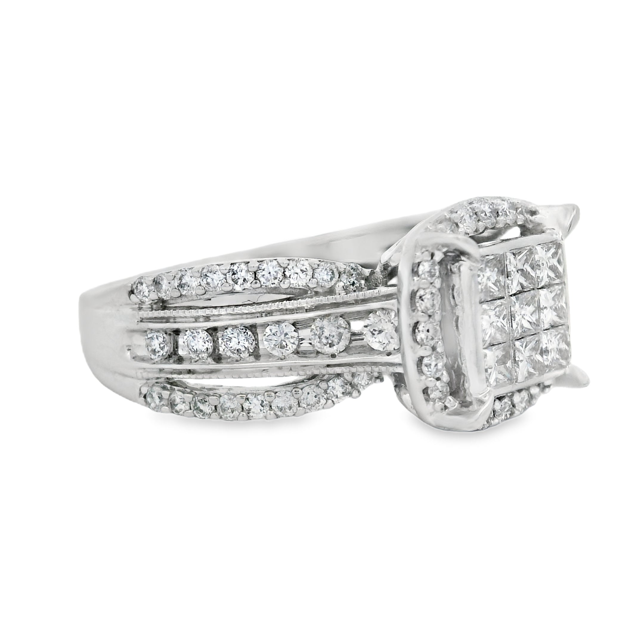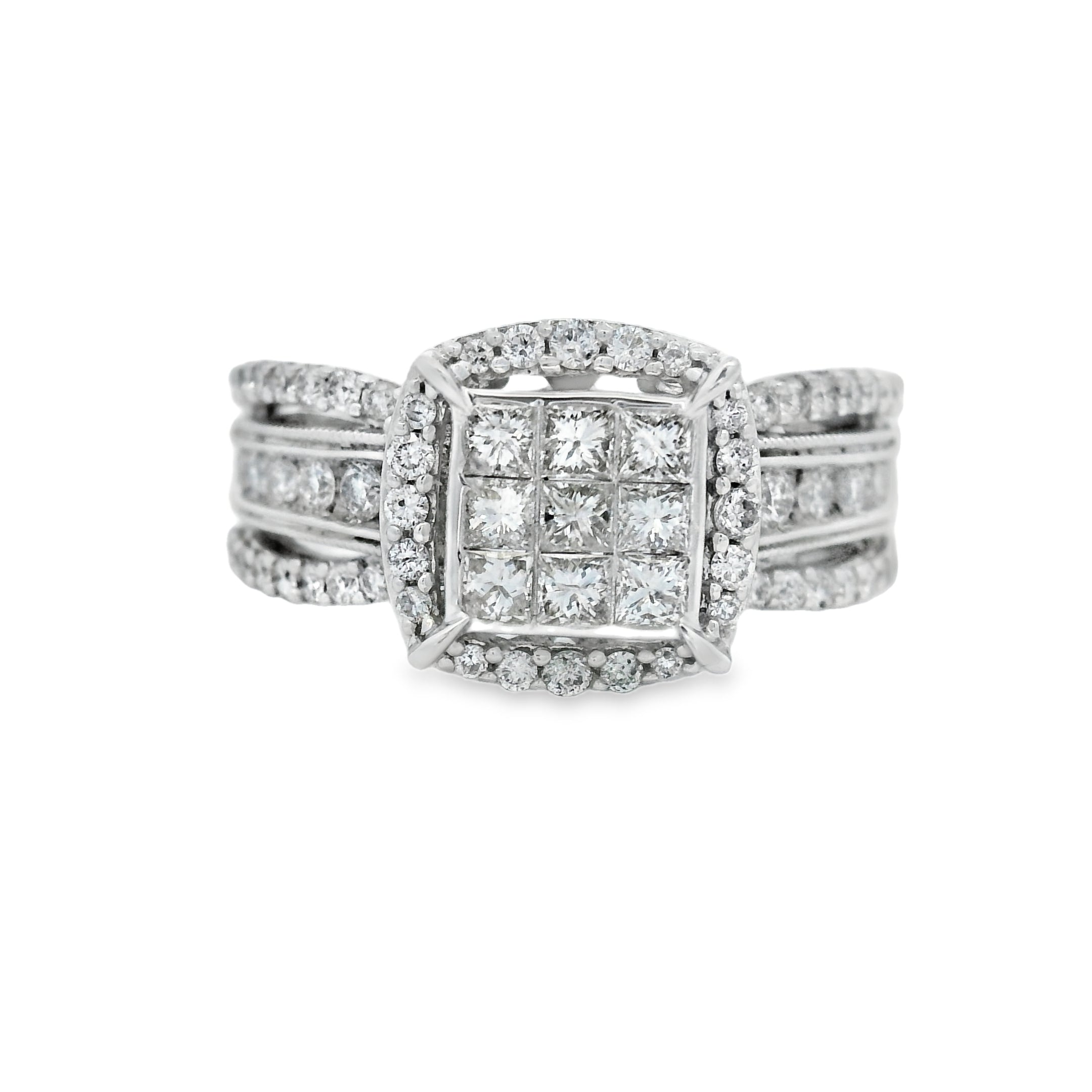 White Gold Cluster Halo Diamond Engagement Ring