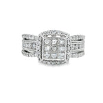 This stunning diamond cluster ring features a unique design with a central square of sparkling diamonds, surrounded by a halo of smaller stones. Crafted in high-quality metal, it radiates elegance and sophistication, making it the perfect accessory for any special occasion.