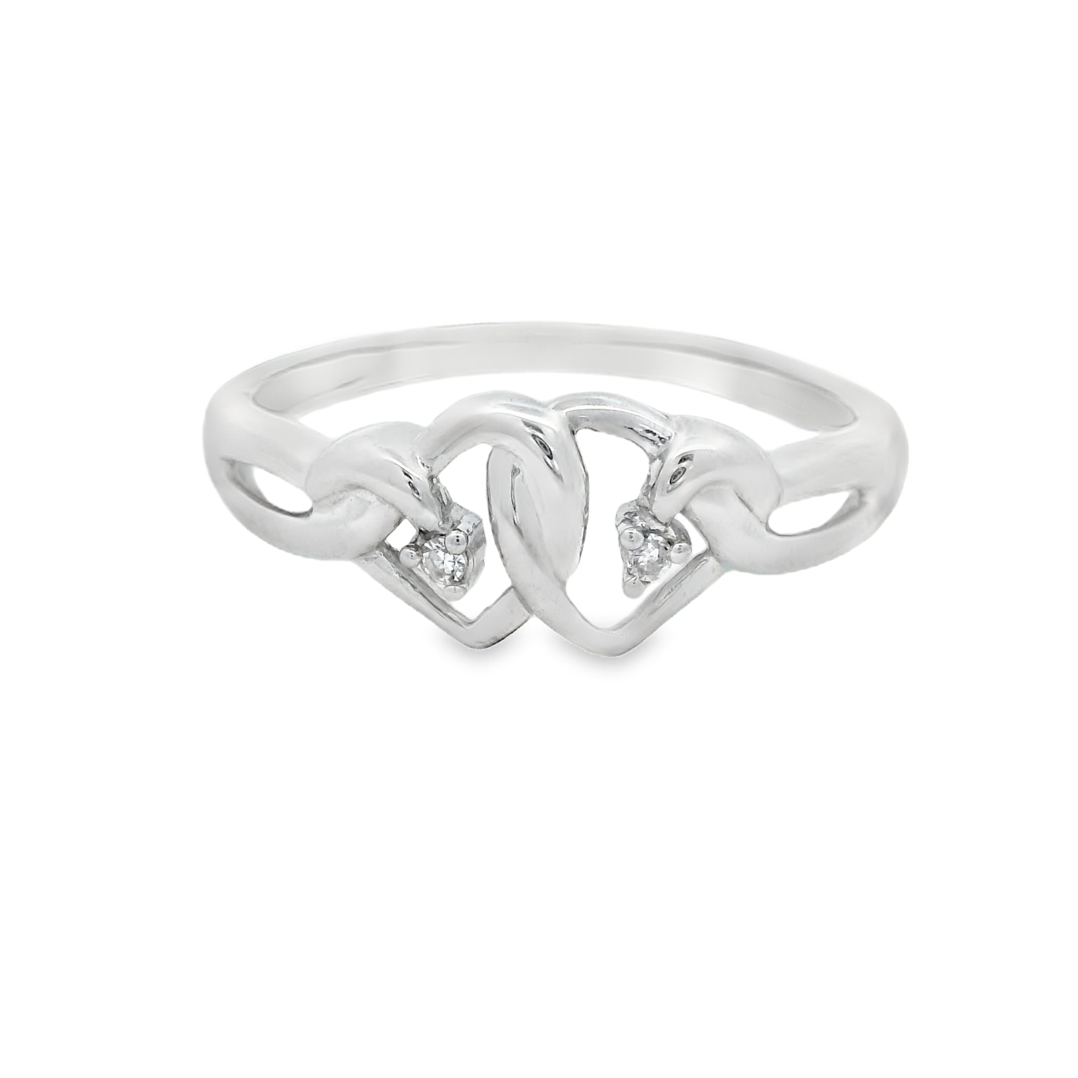 White Gold Double Heart Diamond Ring
