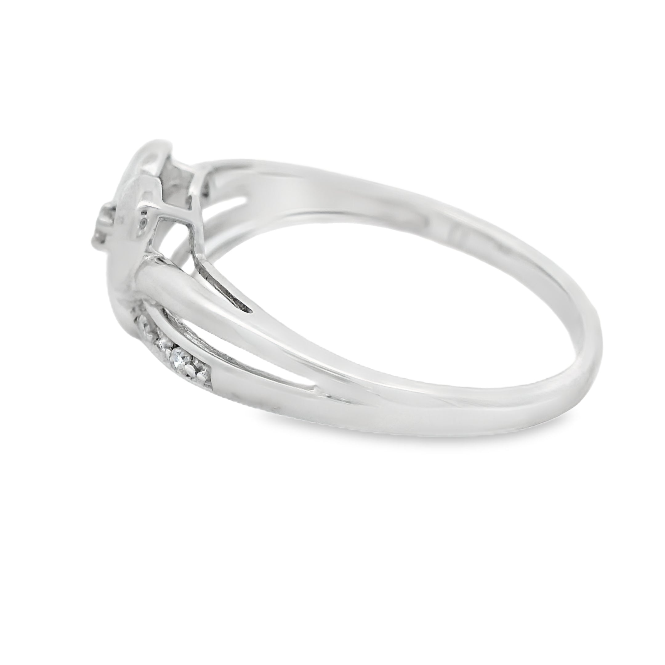 xquisite multistone ring crafted in lustrous white gold. This elegant piece features a central round brilliant cut diamond, complemented by smaller accent diamonds along the band, creating a harmonious and sparkling design. The ring's sophisticated setting enhances the brilliance and fire of each diamond, making it a perfect symbol of love and commitment.