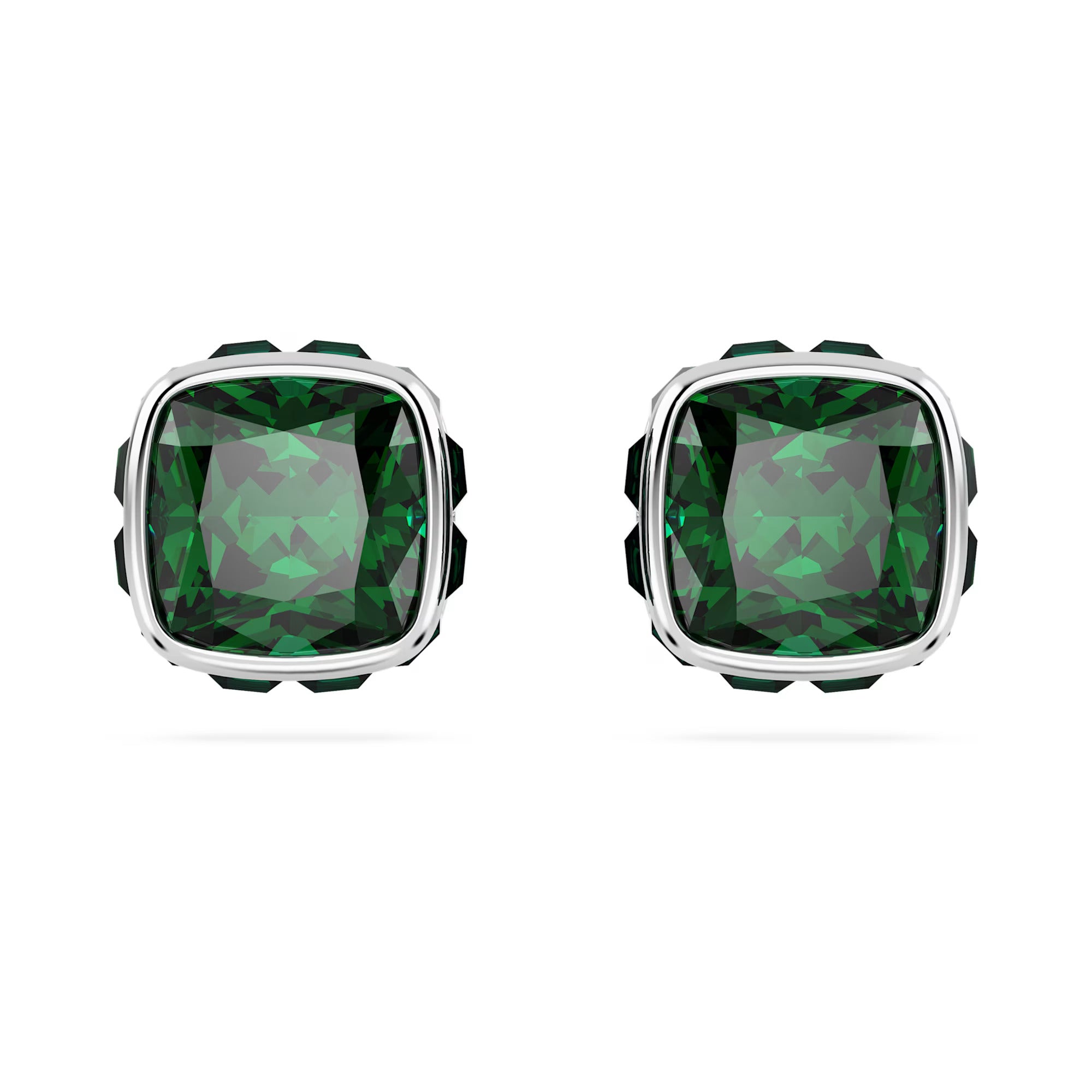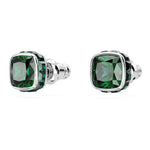Birthstone stud earrings Square cut, May, Green, Rhodium plated