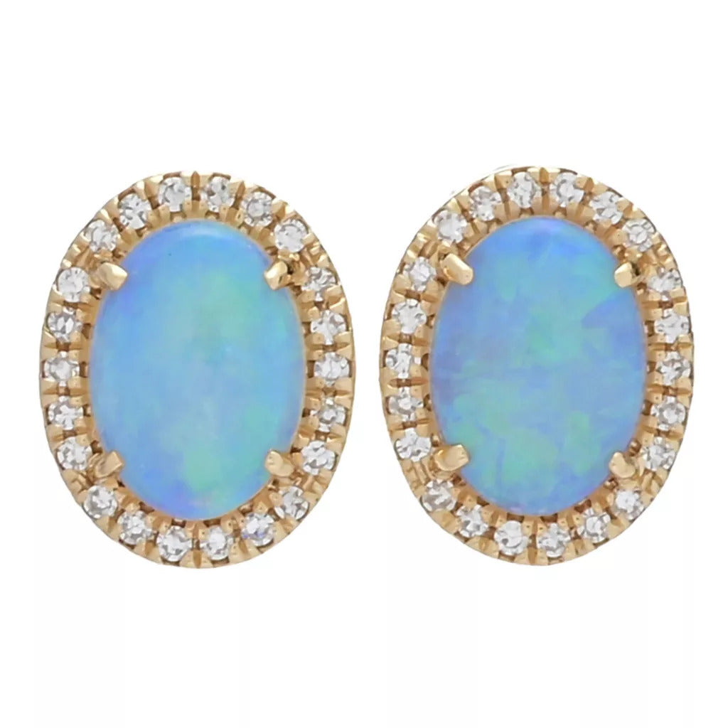 Sabrina Designs 14KY Gold Polished 6x4mm Opal & Diamond Stud Earrings