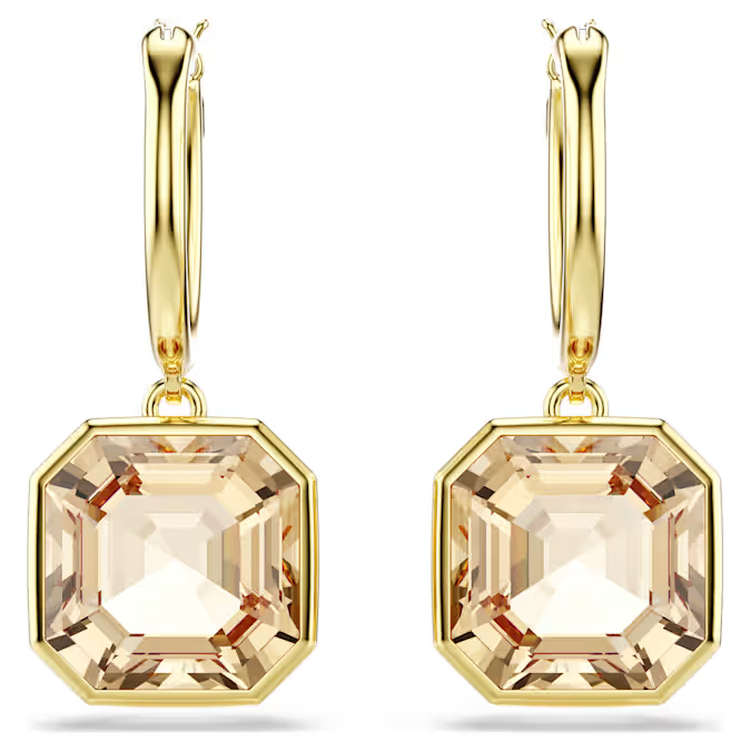 Swarovski Millenia drop earrings Square cut, Caramel, Gold-tone plated