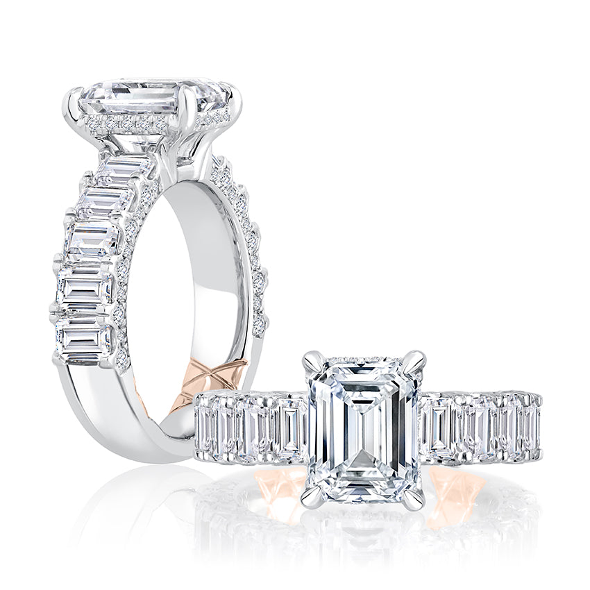 Emerald Cut Diamond Engagement Ring with Emerald Diamond Accents Band