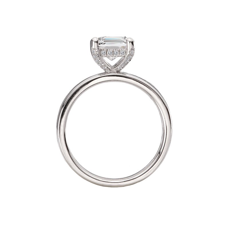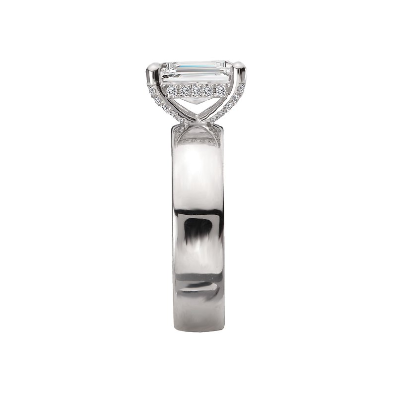Romance 160254-EM200 Emerald-Cut Halo Semi-Mount Diamond Ring in 14K White Gold