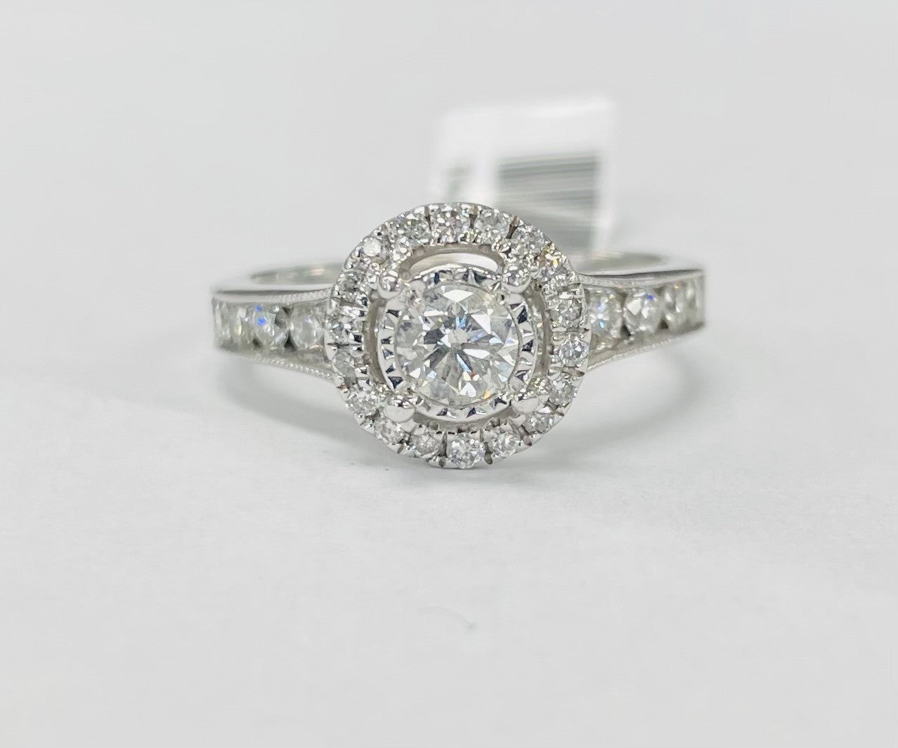 This remarkable ring is made out of stunning white gold. Featuring a plethra of dazzling round brilliant diamonds this ring gives you a huge look for an amazing price. Dont let the price tage fool you this ring is something to be seen!