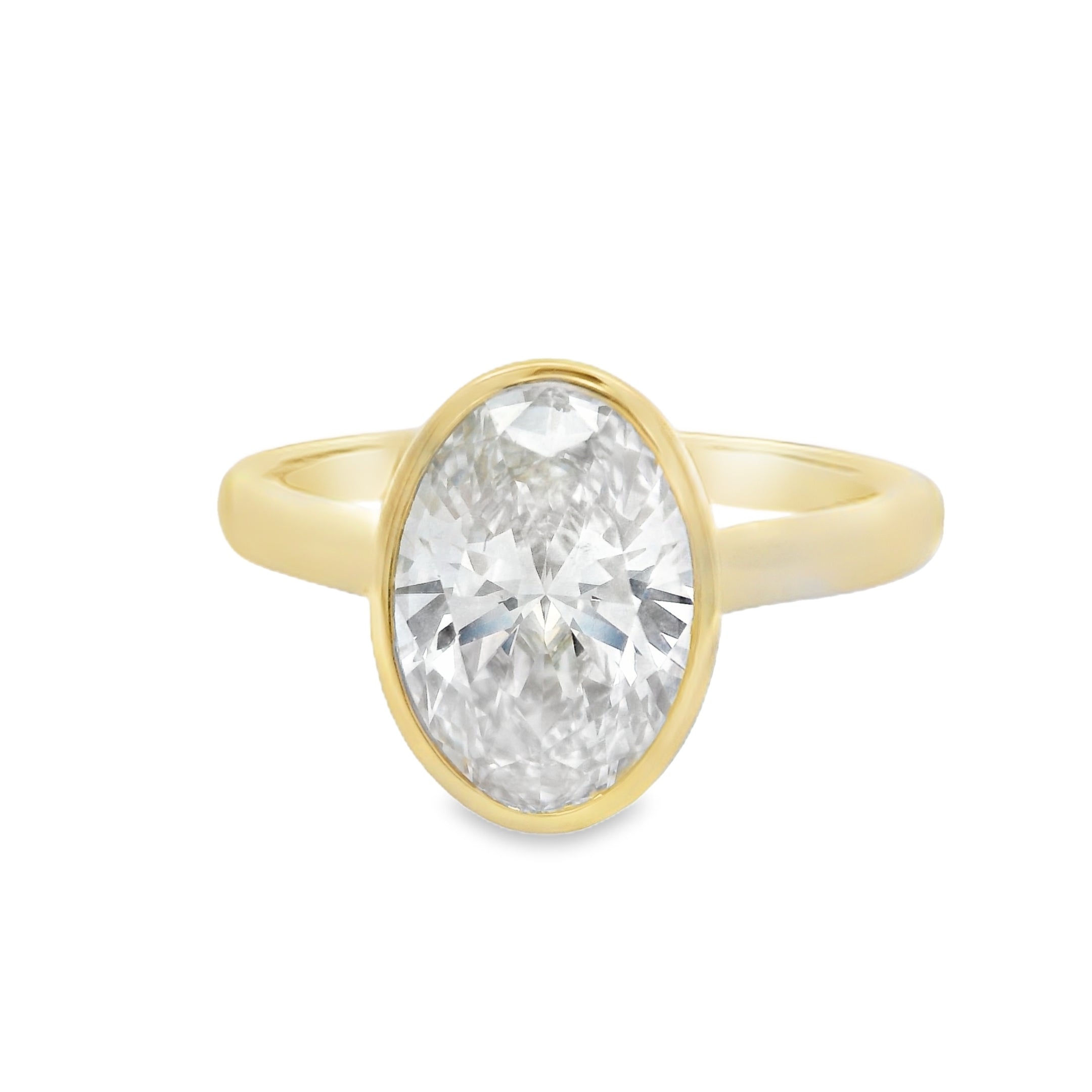 2CT Oval Yellow Gold Bezel Engagement Ring - Lab Grown