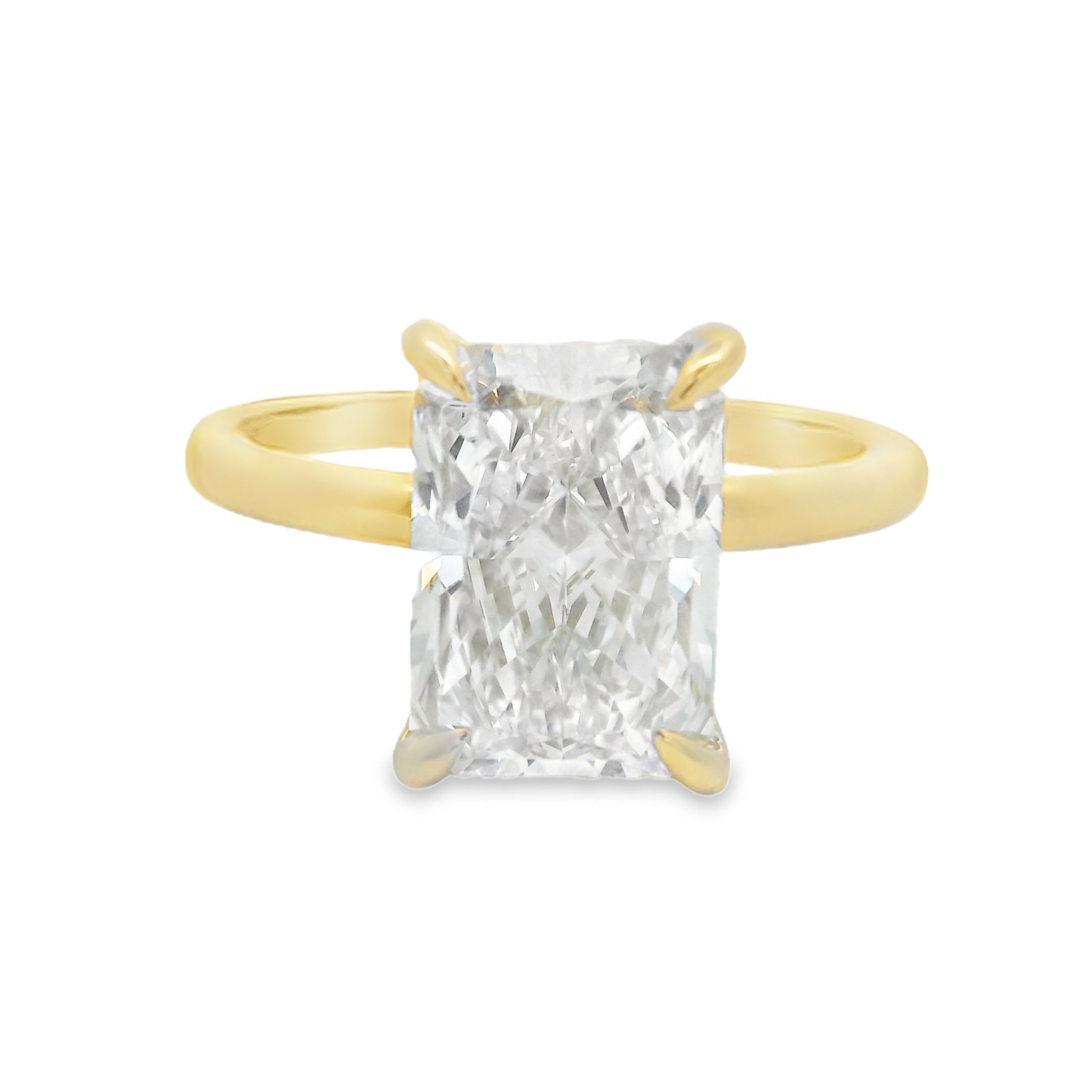 3 1/8CTW Yellow Gold Hidden Halo Radiant Lab Grown Diamond Engagement Ring