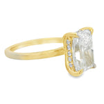 Exquisite multistone ring crafted in luminous yellow gold. This timeless piece features a brilliant RADIANT cut diamond as its centerpiece, complemented by smaller accent stones on the hidden halo. A perfect blend of classic elegance and modern design.