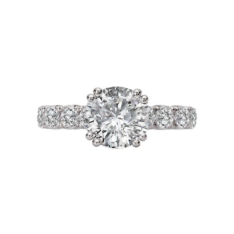 - 2ct round center stone with 3/4cttw 8-stone accent diamonds