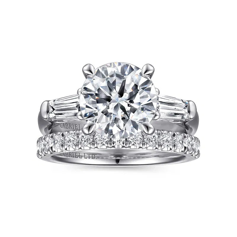 Gabriel & Co. Cammie ER15843R12W83JJ – 18K White Gold Round Three-Stone Diamond Engagement Ring