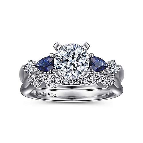 Gabriel & Co. Carrie ER6002W44SA – 14K White Gold Round Five-Stone Sapphire and Diamond Engagement Ring