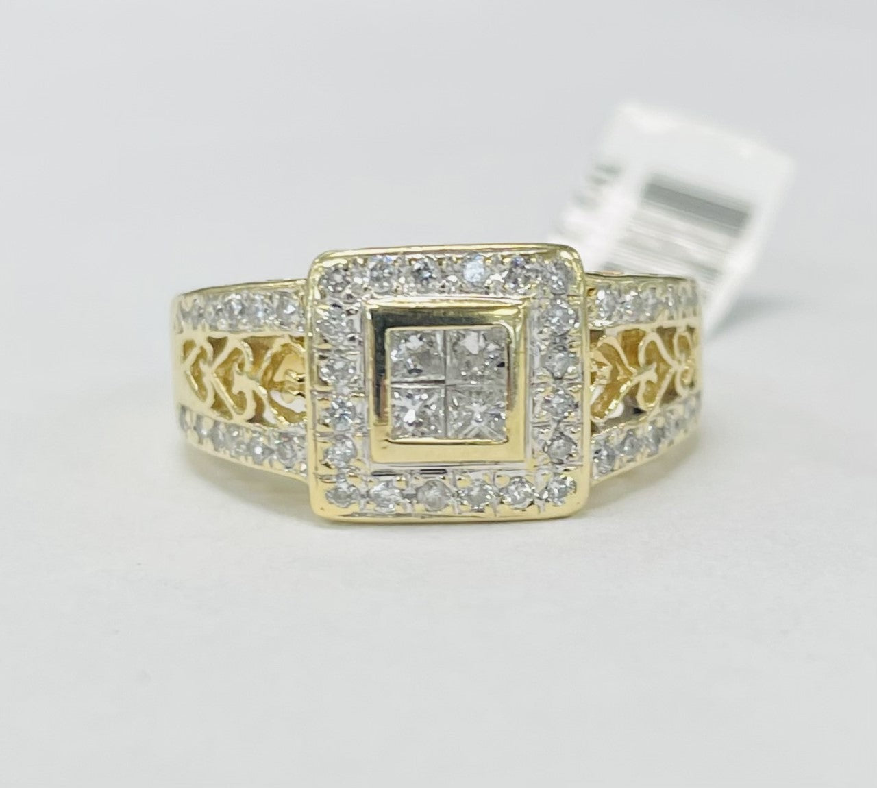 This beautiful fashion vintage inspired ring is made out of lucious 14kt yellow gold and features a plethrea of diamonds equalling 5/8CTW Of diamonds.