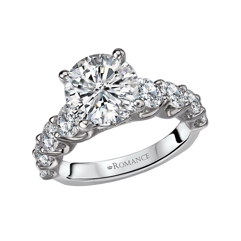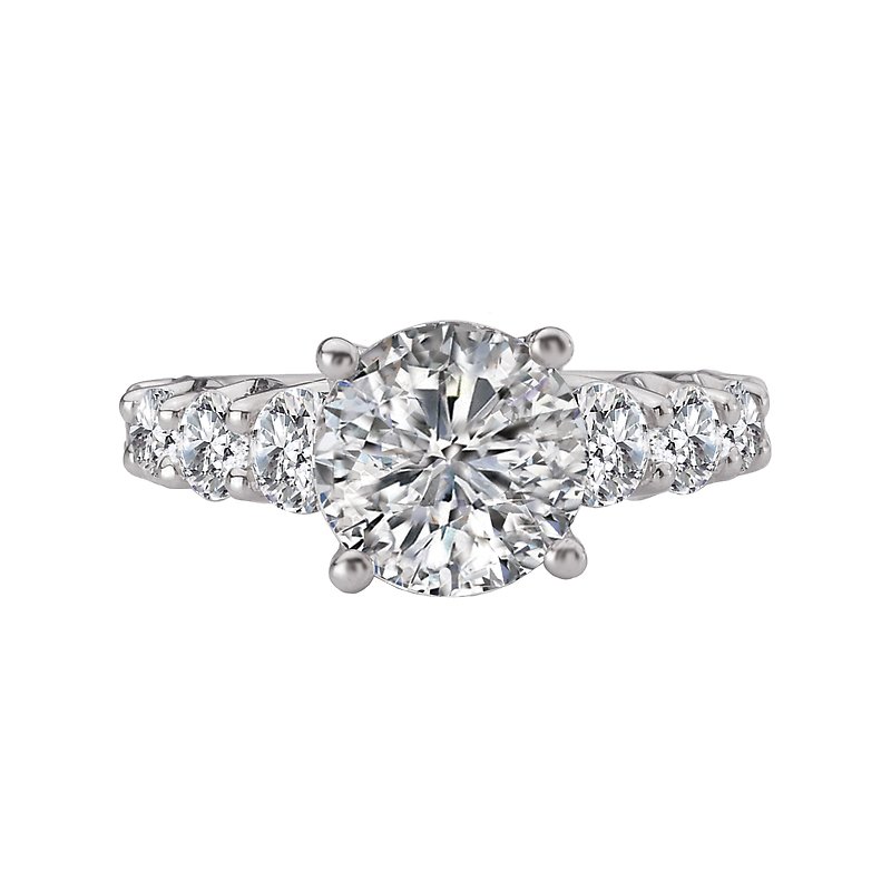 Graduated Diamond Ring in 14kt White Gold. (D 1-3/8 carat total weight) This item is a SEMI-MOUNT and it comes with NO CENTER STONE as shown but it will accommodate a 9.4mm round center stone.