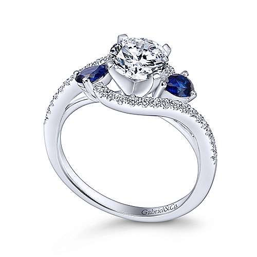 Gabriel & Co. Demi ER5331W44SA – 14K White Gold Round Three-Stone Sapphire and Diamond Engagement Ring