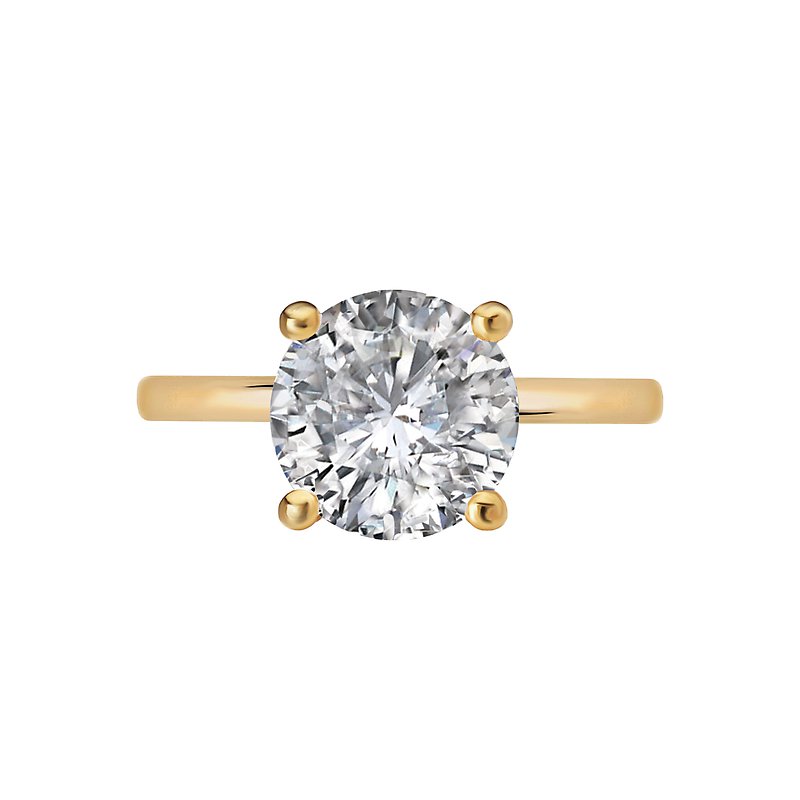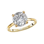 - 2.5ct round center stone with 1/10cttw hidden halo accent diamonds