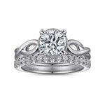 The Gabriel & Co. Emiliana ER15790R4W44JJ engagement ring is a sophisticated split-shank design crafted in polished 14K white gold. Featuring a brilliant round-cut center diamond set in a secure prong setting, the band splits gracefully into two rows accented with pave-set diamonds, creating a dramatic yet elegant silhouette. The split-shank design enhances finger coverage and sparkle, making the Emiliana ring a radiant choice for brides who appreciate bold elegance with timeless brilliance.