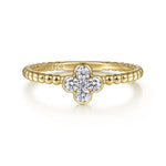 Gabriel & Co. LR51911Y45JJ – 14K Yellow Gold Diamond Clover & Bujukan Bead Stackable Ring