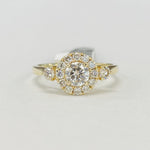 Halo Three Stone Yellow Gold Diamond Engagement Ring