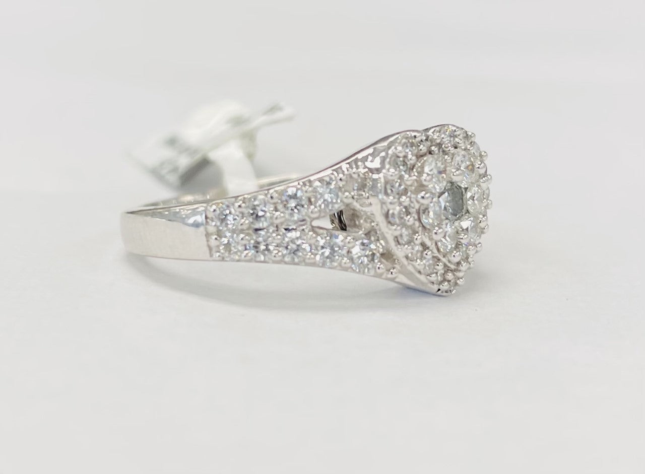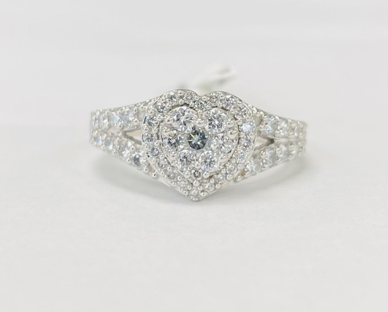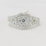 "I give you my heart forever and always" is the true meaning behind this dazzling ring. Made in the shape of a traditional heart, diamonds are pave set all over to make itself sparkle from any angle. With a trendy split shank style you can have piece of mind knowing that she will be able to wear this for decades to come.