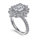 Gabriel & Co. Lisette ER15630E8W44JJ – 14K White Gold Fancy Halo Emerald Cut Diamond Engagement Ring