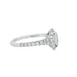 This beautiful marquise ring features a unique graduated style diamond accents. With a stunning marquise ring in the center accented by a halo this ring is perfect for any marquise lover.