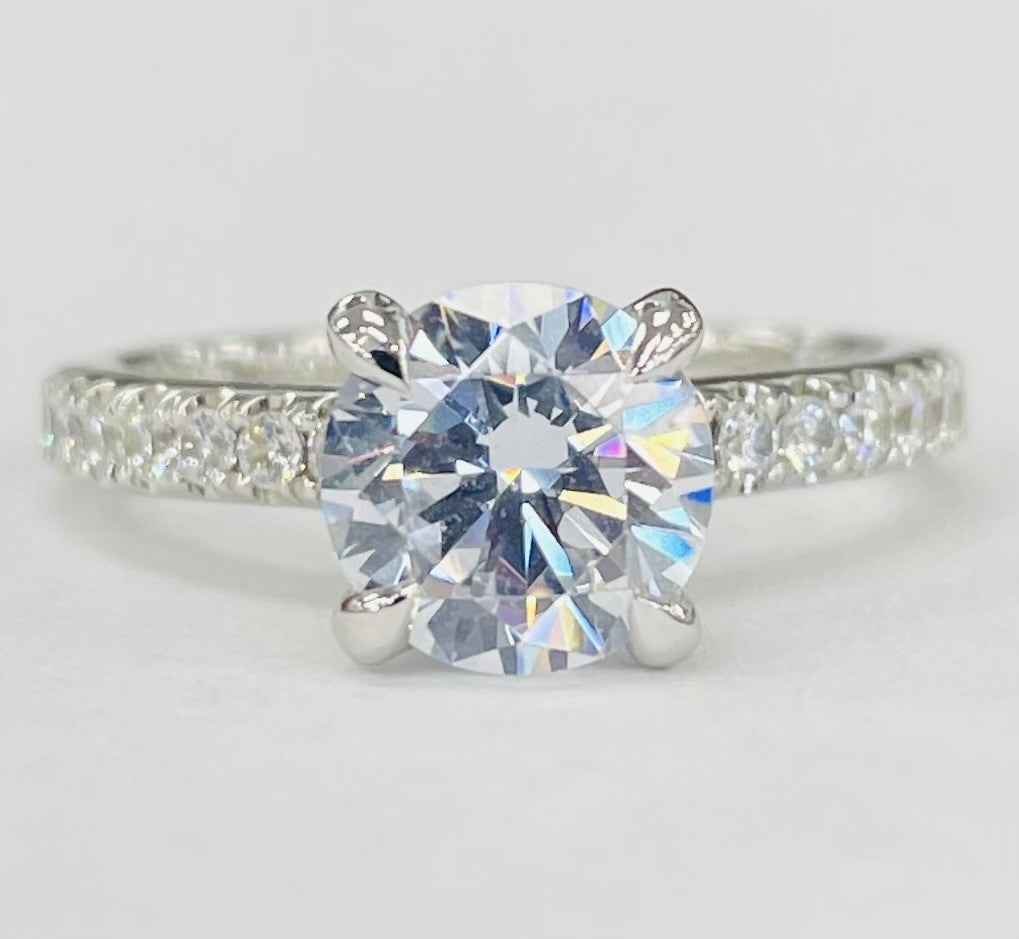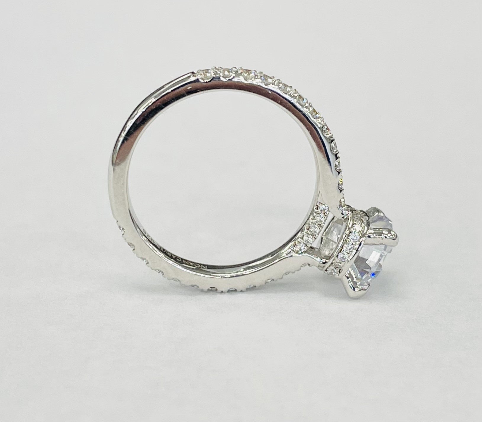 - Center Stone: Fits Round, Oval, or Emerald cut (not included)