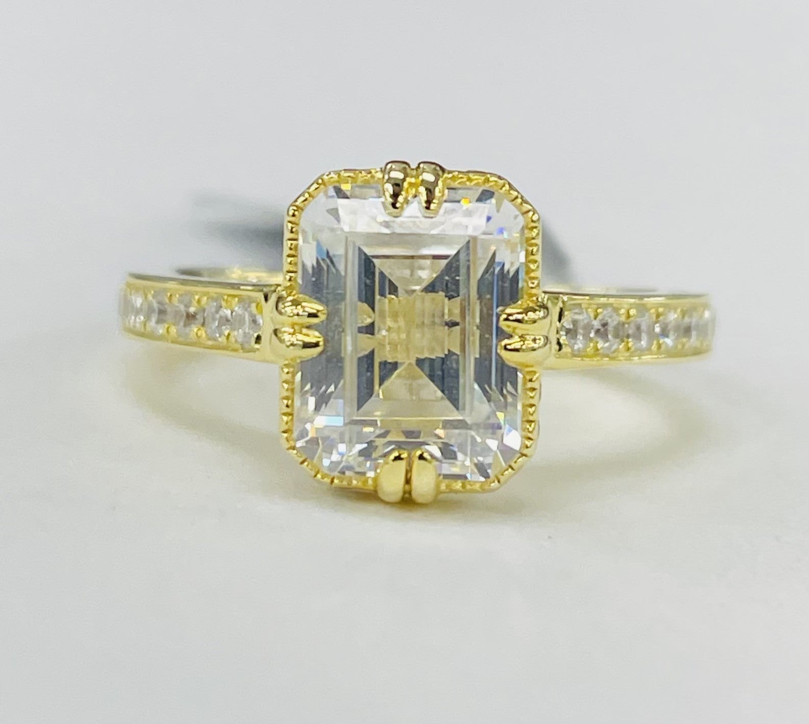 - Center Stone: Not included (fits approx. 2.5 ct Emerald or Round center diamond)