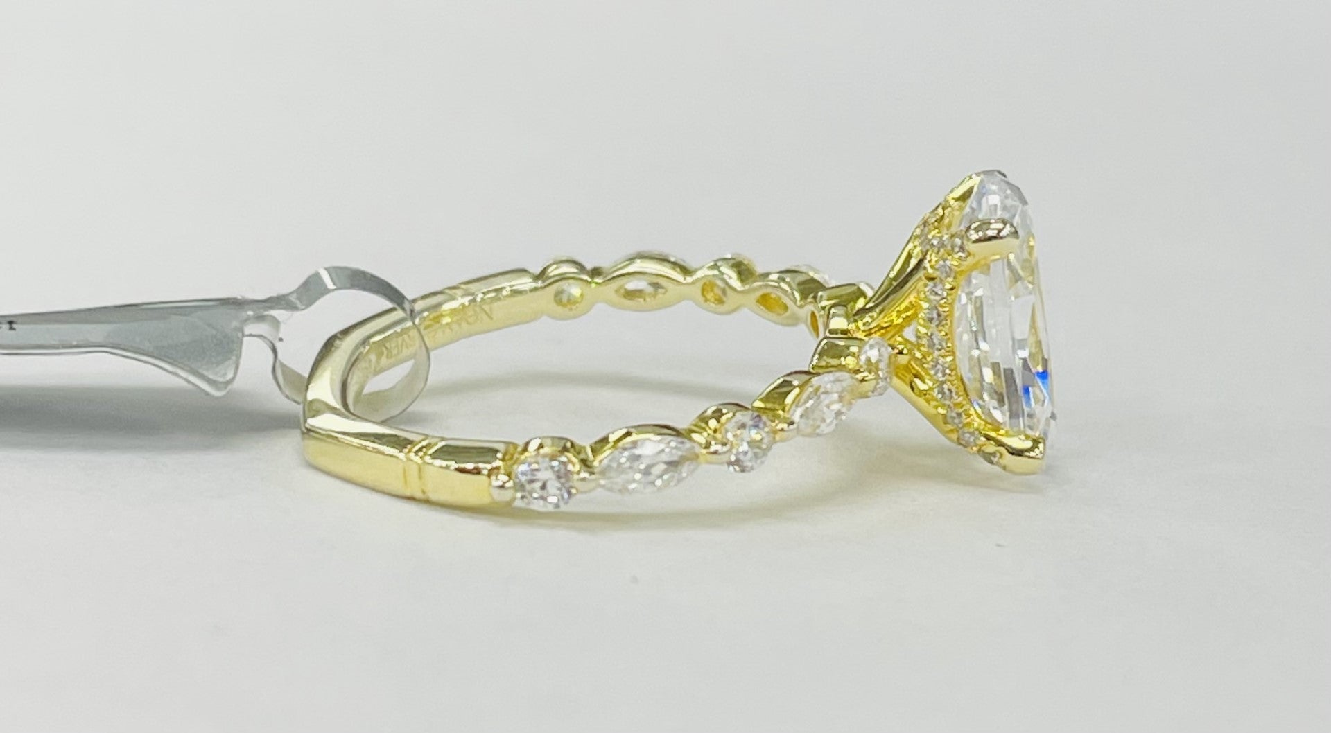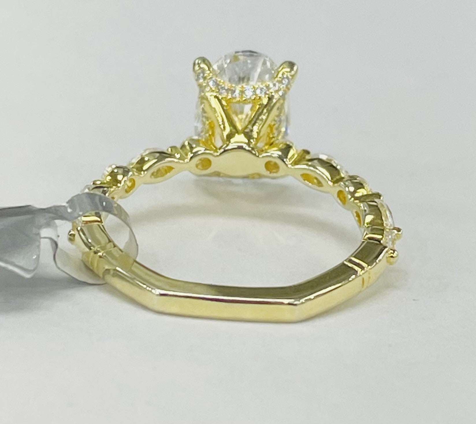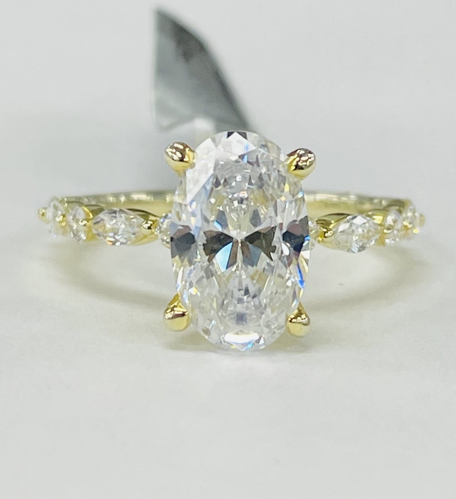 - Center Stone: Not included; customizable (fits oval diamonds approx. 2.00–2.50 ct)
