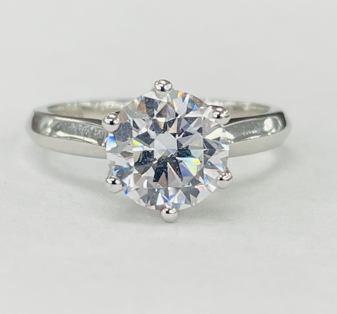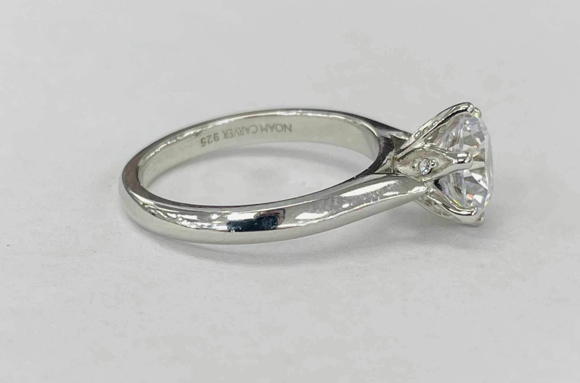 - Center Stone: Not included; fits round diamonds approx. 1.00 ct