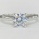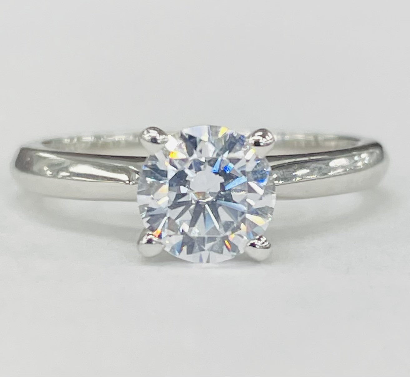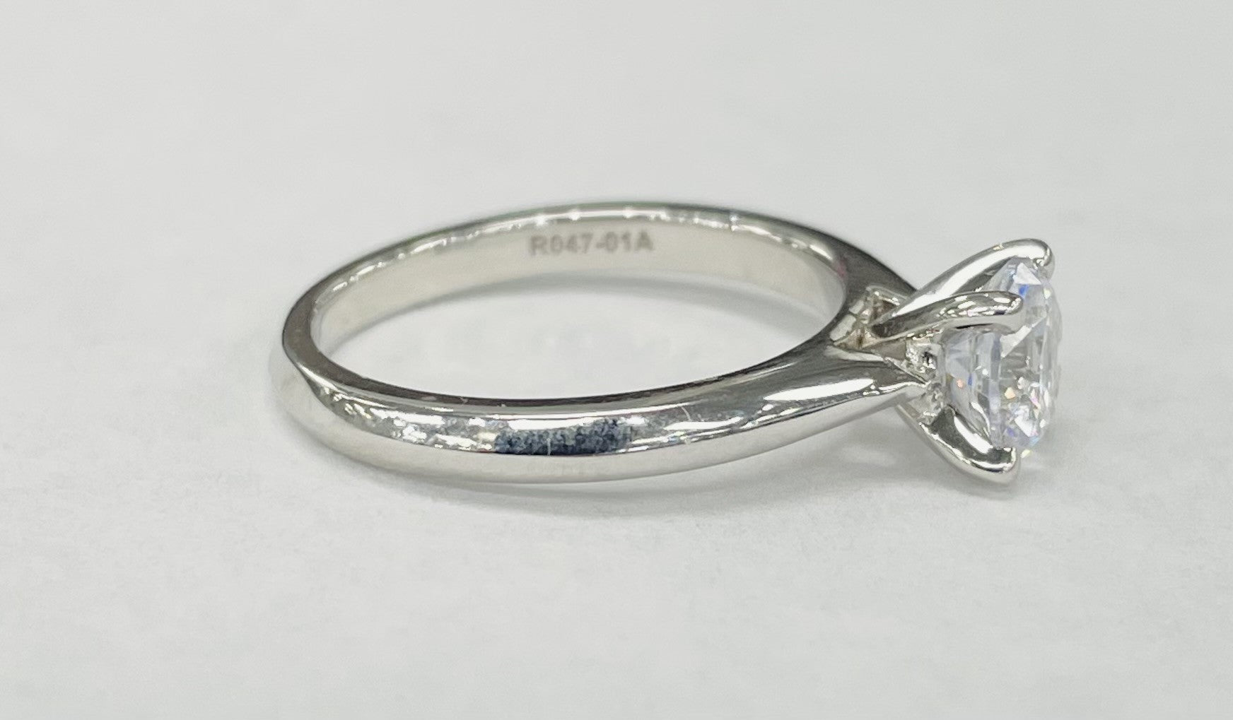 A classic style. This white gold ring features a tappered high polish shank to bring the eye to your center stone. A true classic that will never go out of style.