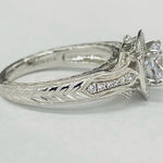 - Design Features: Vintage scalloped detailing, milgrain edges, pavé-set shank