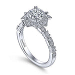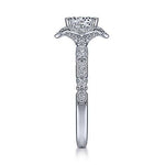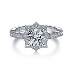 Gabriel & Co. Pietra ER15229R4W44JJ – Vintage Inspired 14K White Gold Fancy Halo Round Diamond Engagement Ring
