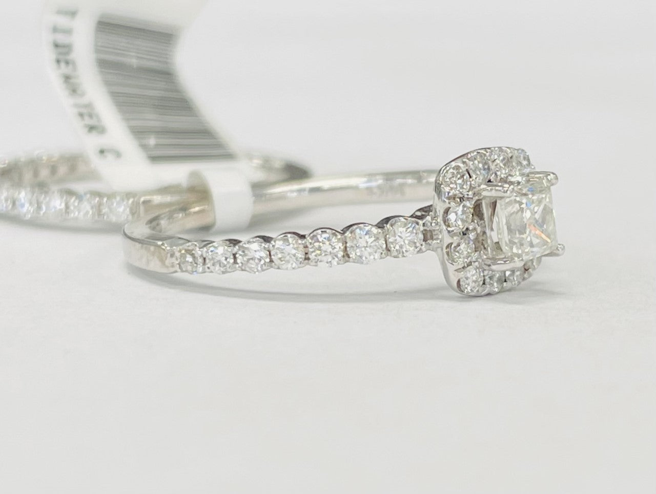 Princess Cut Halo 1CTW Diamond Wedding Set