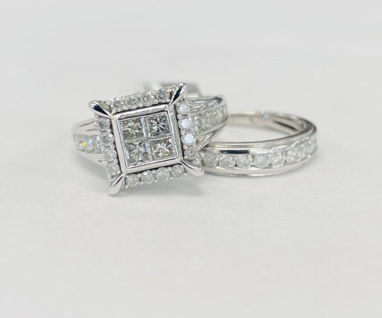 Quad Square Halo Diamond Wedding Set 1 1/2CTW