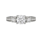 3-Stone Diamond Ring with Round Accent Diamonds and Side Stones in 18kt White Gold (D 3/4 carat total weight) This item is a SEMI-MOUNT and it comes with NO CENTER STONE as shown but it will accommodate a 5.8-7mm round center stone.