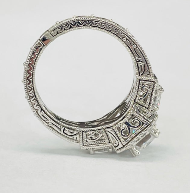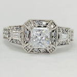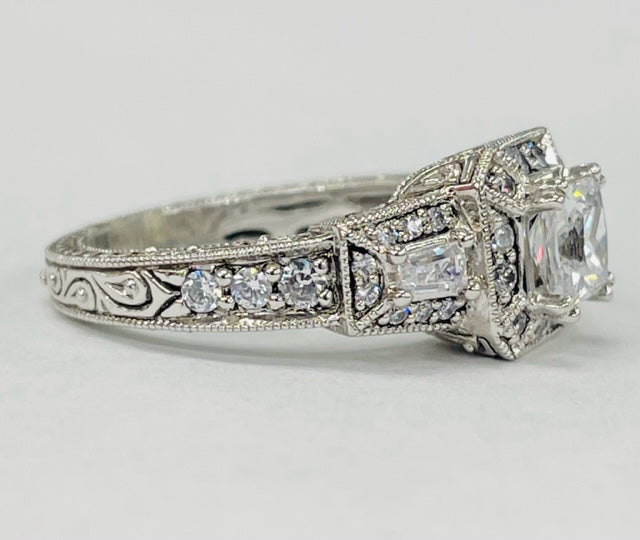 Romance - Detailed Three Stone Halo Vintage Inspired Setting