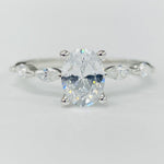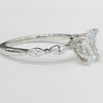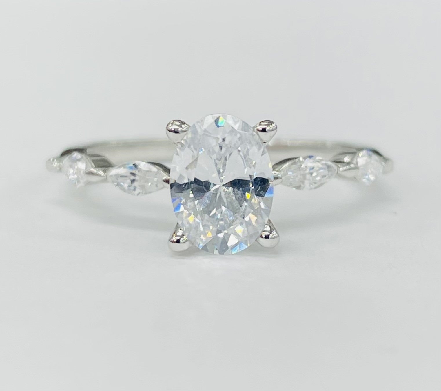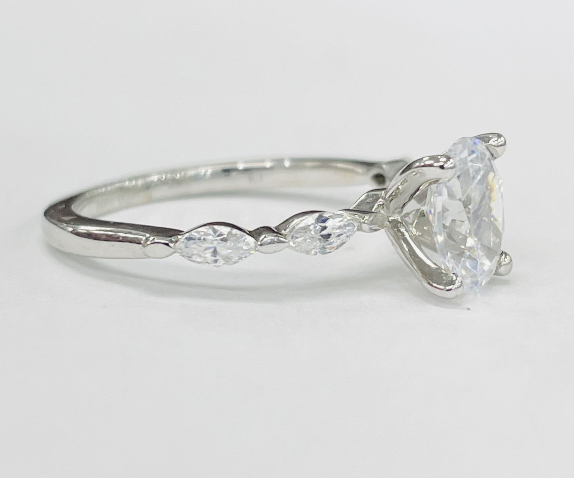A dazzling accented solitare mounting. Featuring a simple setting with east/west set marquise diamonds to accent your beautiful center stone.
