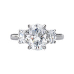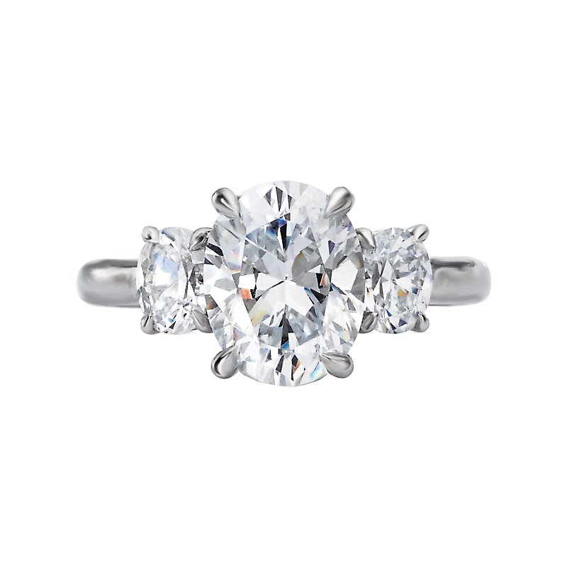 *** Lab Grown Diamond *** This stunning all-time classic semi-mount engagement ring is made to your unique specifications. The ring shown has two 5x3.8mm oval shaped diamonds flanking a center setting that will accommodate a 9.5x7.5mm oval shaped diamond. When ordered, we will create your custom ring to fit the exact specifications you provide in the metal of your choice 14kt, 18kt, or platinum. (D 5/8 carat total weight) Price varies reflecting customization.