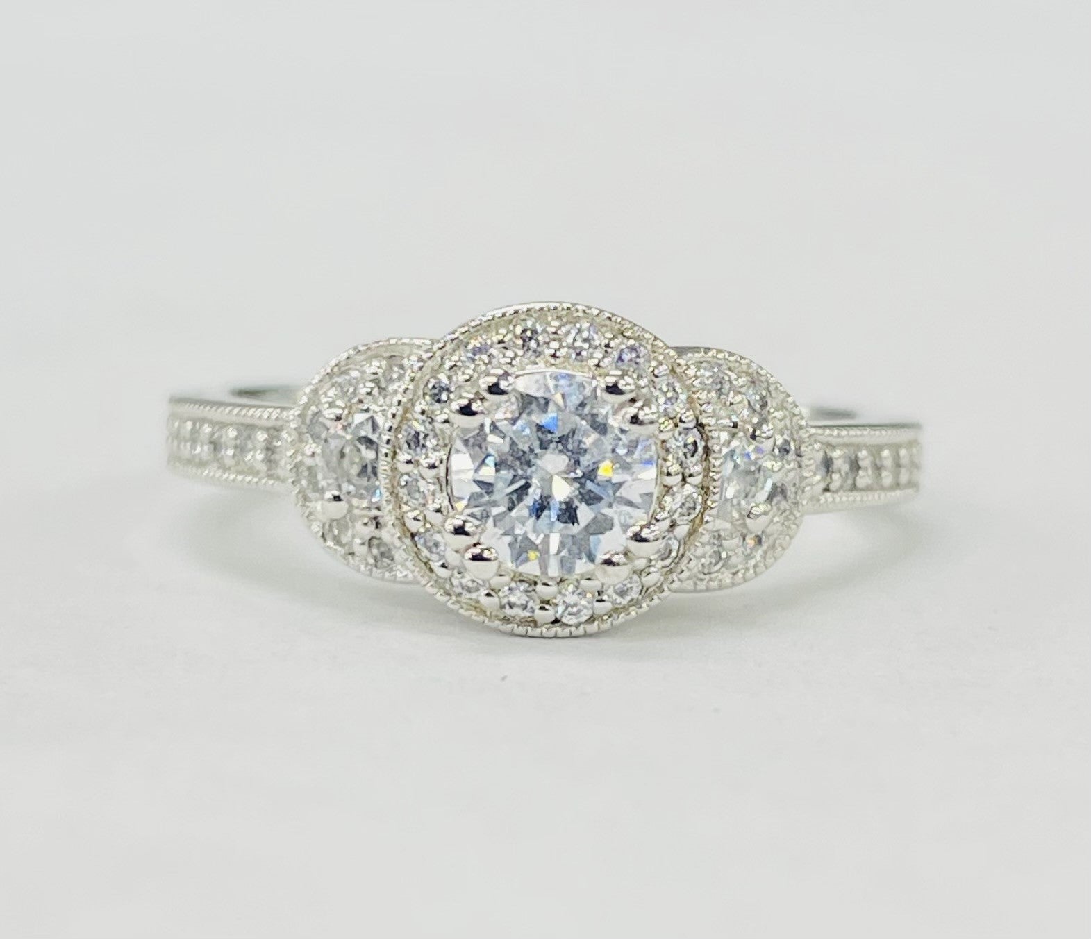 Romance - Simple Three Stone Halo Diamond Setting