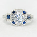 Romance - Vintage Inspired Halo Sapphire And Diamond Setting