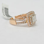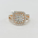 Made to dazzle and shine, this ring is a true show stopper! Featuring a healthy ammount of princess and round cut diamonds this ring pops with blinding light! Made out of rose gold to give stunning contrast to the diamonds. Perfect for any rose gold loving women!