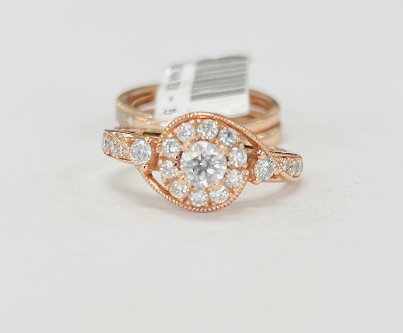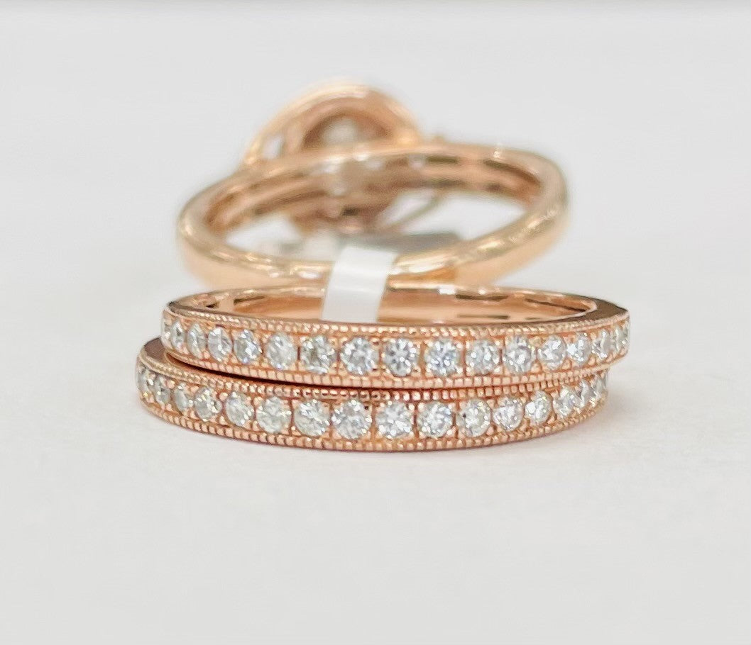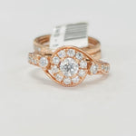 Rose Gold Twist Halo Diamond Wedding Set W/ Two Bands